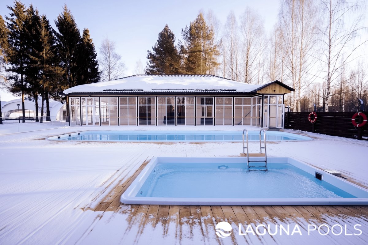 Комплекс композитных бассейнов в зимнем оформлении